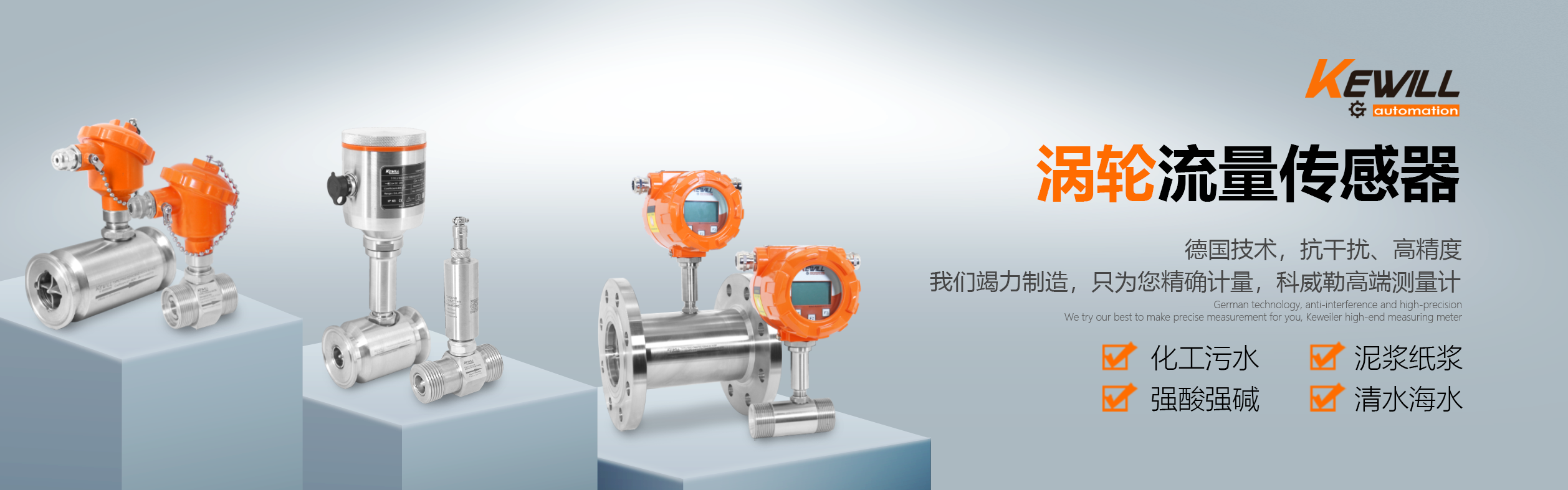 科威勒(中國(guó))自動(dòng)化有限公司是KewillAutomationGmbH(德國(guó)科威勒自動(dòng)化公司)的全資子公司,主要銷售產(chǎn)品有:流量計(jì),電磁流量計(jì),進(jìn)口流量計(jì),進(jìn)口電磁流量計(jì),KEWILL(科威勒),溫度傳感器,流量傳感器,壓力傳感器,液位開關(guān),壓力開關(guān),物位開關(guān),溫度開關(guān),流量開關(guān),液位計(jì)等,銷售熱線:021-54430662. 德國(guó)科威勒 (KEWILL)成立于1975年,位于德國(guó) Flughafenstr. 1-4 2325 Hamburg,主要生產(chǎn)流量開關(guān)、流量監(jiān)控器、流量計(jì),是當(dāng)前世界上較大的小口徑流量監(jiān)控器和開關(guān)生產(chǎn)工廠。1993年通過了ISO9001國(guó)際認(rèn) 證,1999年發(fā)明了熱傳溫差技術(shù)并成功運(yùn)用到流量檢測(cè)領(lǐng)域并已成為行業(yè)標(biāo)準(zhǔn)。 科威勒(KEWILL)公司擁有嚴(yán)格的質(zhì)檢管理體系和完善的售后服務(wù)體系,高品質(zhì)和良好的聲譽(yù)奠定了其在行業(yè)內(nèi)世界先進(jìn)地位。